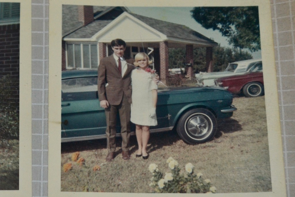 The Mustang we drove is just behind us in our one and only wedding photo. It looked like a good car to drive fast but underneath it was just a Ford Falcon, a big economy car, and I never liked going fast. With Nita’s condition in mind as well as Dr. Sawyer’s command, I drove close to 75 for most of the trip. Highway 378 is from Saluda to Greenwood is curvy. I had in my head one particular curve where my brother Butch had totaled a Ford Galaxy a few years earlier.