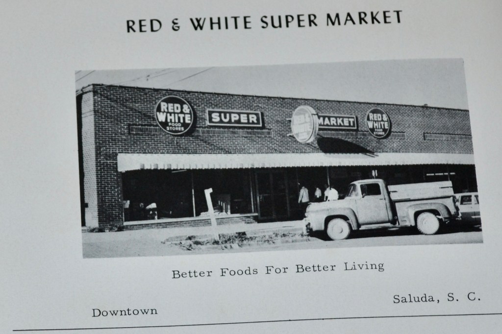 was a supermarket in Saluda, SC, and my first regular pay job. It was three doors down from Ben Hazel’s Grocery Store where I used to take lists of items that my mother Leona wanted. Mr. or Mrs. Hazel would find the items and give them to me carry home or arrange for delivery.